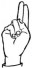 На ћирилици написано ПЕРИША ЈУГОВИЋ састоји се из 13 слова [?]. Исписано ћириличном једноручном азбуком за глувонеме: